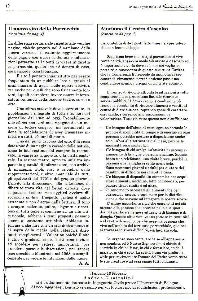 Home Giornalino Anni 2000-2009 Edizione 2pif n. 32 Pasqua 2004
