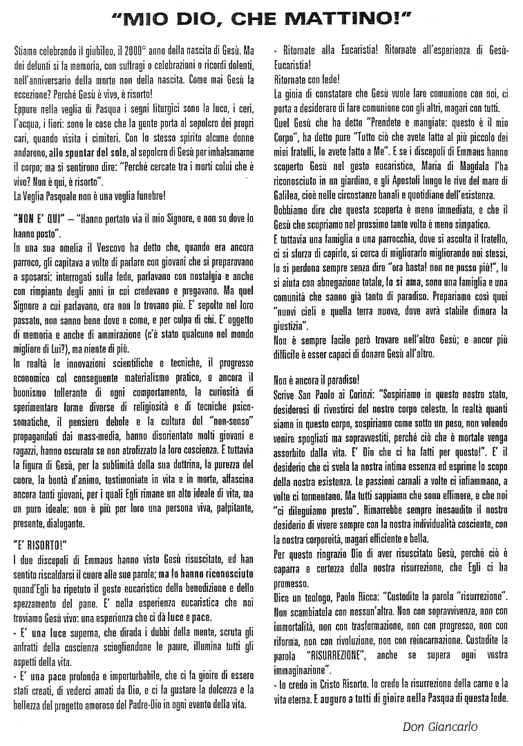 Home Giornalino Anni 2000-2009 Edizione 2pif n. 21 Pasqua 2000