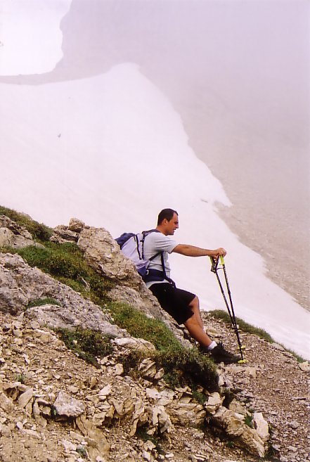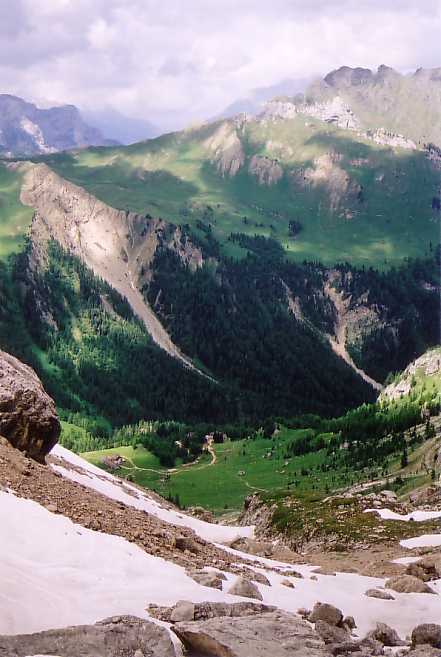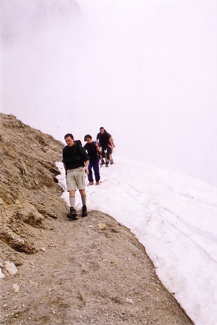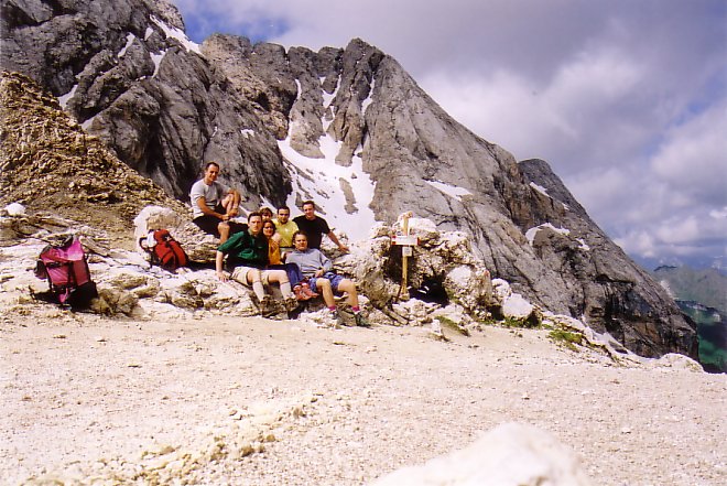 Il percorso sito a sud della Marmolada ci ha portati da Malga Ciapela lungo la Valle Ombretta fino al Rifugio Faller (2.080 m.) dove abbiamo gustato un’ottima cena e pernottato. Il mattino seguente di buonora abbiamo raggiunto il Passo Ombretta (2.700 m.) osservando con timore ed un pizzico di invidia alcuni arrampicatori sulla parete sud della Marmolada immersi nella foschia.