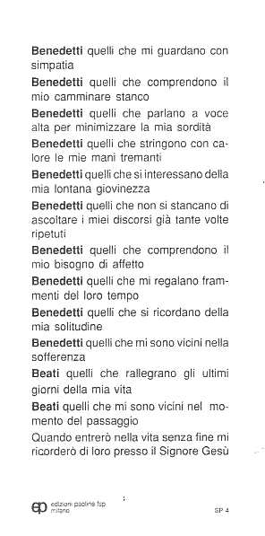 [in coro, gli anziani e i fedeli presenti leggono il retro de "il cantico di un anziano" – n.d.r.]