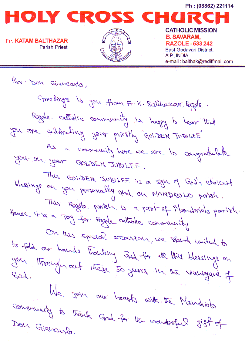 Razole catholic community is happy to hear that you are celebrating your priestly “GOLDEN JUBILEE”.