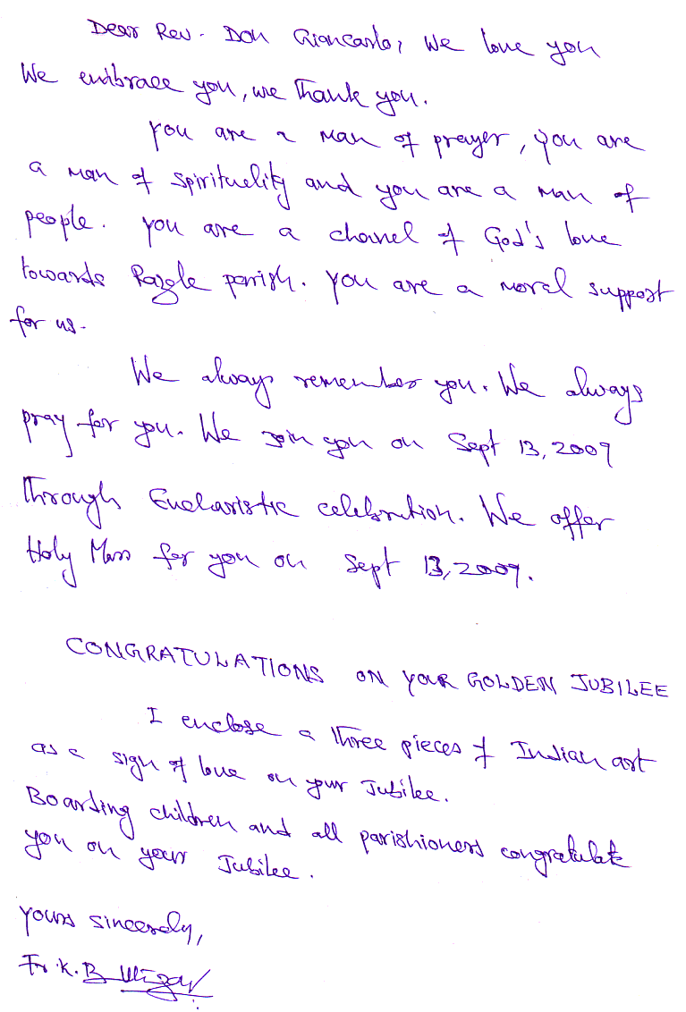 This GOLDEN JUBILEE is a sign of God’s choicest blessings on you personally and on MANDRIOLO parish.