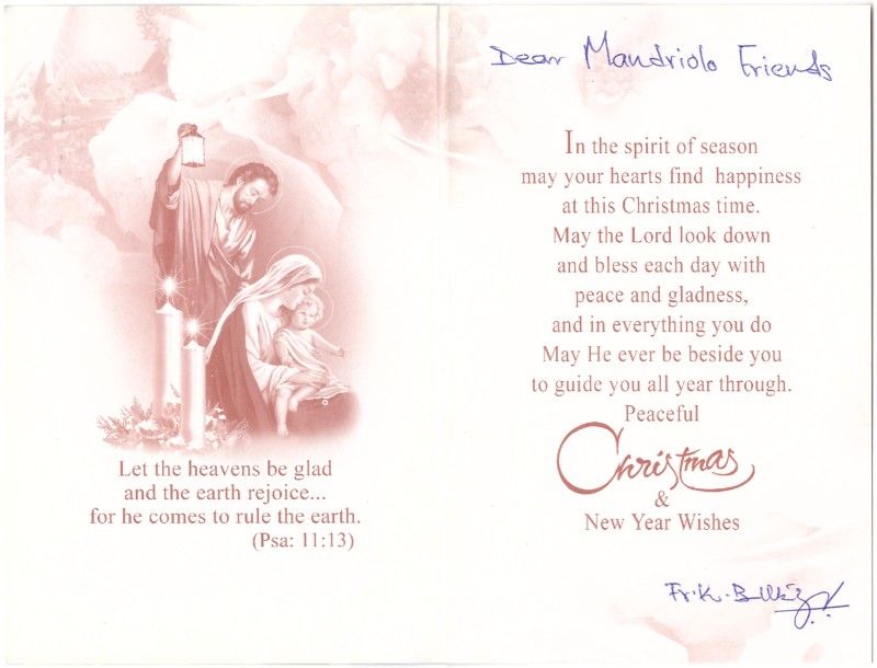 | Greetings to you – Don Giancarlo and Don Wojciench and friends of Mandriolo from Fr. K. Balthazar | Saluti a voi, don Giancarlo e don Wojciech e amici di Mandriolo da padre K. Balthazar | |