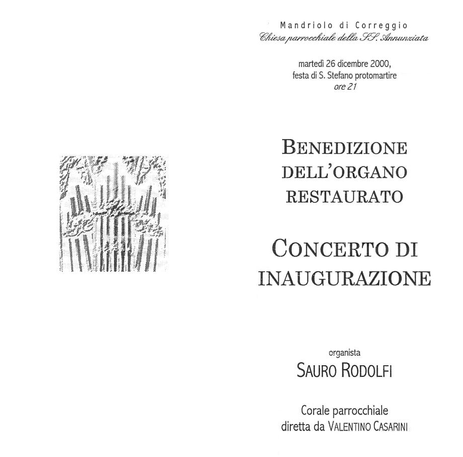 Home Storia Organo e campane 26.12.2000 Inaugurazione post-restauro