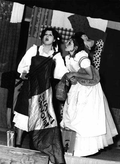 DUE ORFANELLE come pretesto per fare strada al sogno e al ricordo, al sorriso, all’ammiccare, allo sberleffo; teatro come coinvolgimento, come abbandono, come invito, come festa, come celebrazione della fantasia potrebbe affermare senza timori un complesso più conosciuto e valido del Gruppo di Mandriolo...