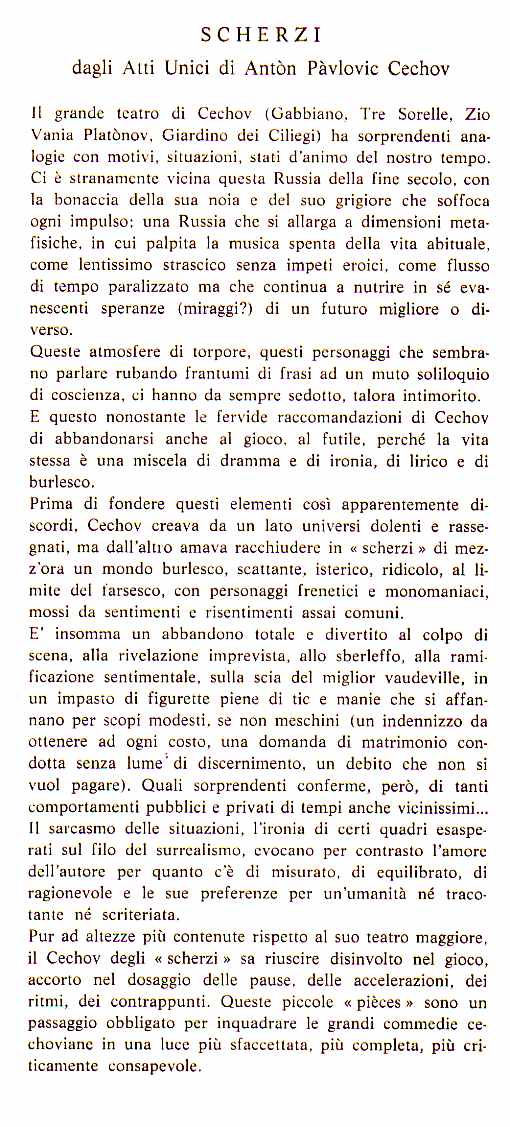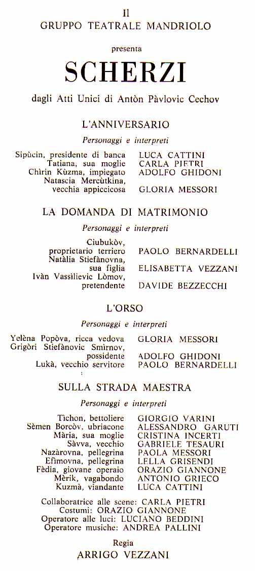 dagli Atti Unici di Antòn Pàvlovic Cechov. Gruppo Teatrale Mandriolo (1987–88).