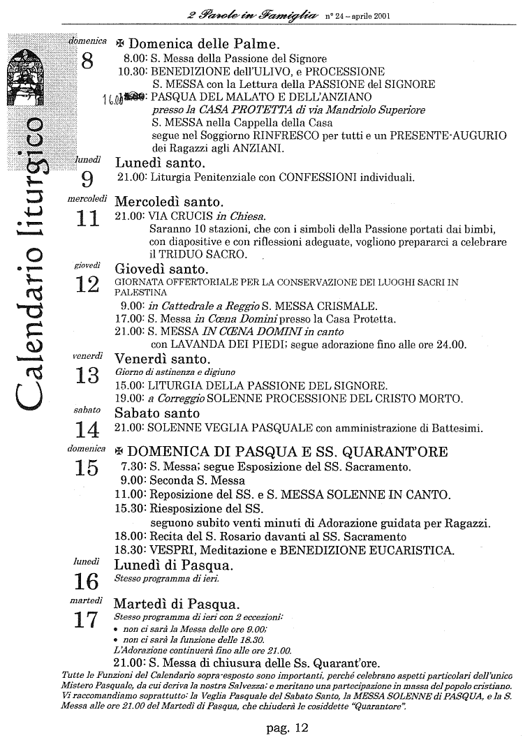 Edizione 2pif n. 24 Pasqua 2001