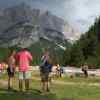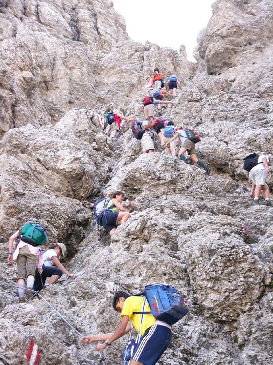 Sono stati per loro (e per tutti) giorni intensi di passeggiate, divertimento, preghiera: le lodi subito dopo la sveglia, la voce di don Giancarlo (Denti, non Nasi) col suo pensiero sul beato Piergiorgio Frassati (sempre breve, intenso incisivo), la colazione con burro e marmellata, le ore di cammino in salita (per raggiungere il rifugio Pisciadù o il Santuario di Santa Croce), il fiatone, la Federica che è sempre già avanti con qualche amica e un capannello di amici insolitamente pronti e attivi, Garuti che è sempre dietro e canta il “Don Giovanni” (Garuti non per chiamare lui per cognome e gli altri per nome, ma lo abbiamo sempre chiamato così, Garuti), la Jessica che fa l’ultimo tratto in spalla a Fabio. Poi l’arrivo, i panini col prosciutto e la coppa (ma anche l’ultimo giorno no, non dovevate), il galak, i gavettoni (aperti a tradimento durante la prima foto di gruppo e chiusi, altrettanto a tradimento, da un insolito don Giancarlo Denti con una sporta piena d’acqua), il caffè e la grappa al rifugio (sì, sì, questo solo i grandi), il Rosario in quota (e noi grandi che quasi ci vergogniamo a proporlo, il Rosario, che noioso... e la Madonna che invece sa il fatto suo). Poi la discesa, i piedi che fanno male, un po’ di caldo (più caldo che freddo, in questa estate dolomitica, anche ad alta quota), la testa di Elia che trova ristoro nell’abbeveratoio, le vacche che aspettano la Giovanna ad ogni voltata del sentiero, e il rientro a casa, le docce, quelli che allagano la camera, quelli che chiudono (sempre) Niko nel bagno (Niko non per chiamare lui con un nomignolo e gli altri no, si chaima proprio così, Niko), e la Messa insieme nella sala grande, e la consacrazione di don Giancarlo che dona intensità di raccoglimento.