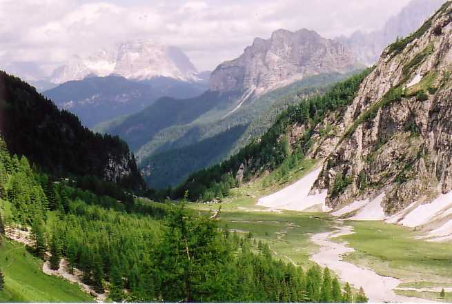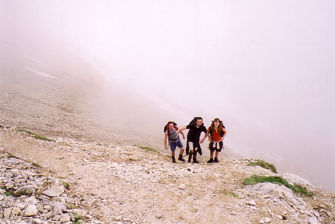 Il percorso sito a sud della Marmolada ci ha portati da Malga Ciapela lungo la Valle Ombretta fino al Rifugio Faller (2.080 m.) dove abbiamo gustato un’ottima cena e pernottato. Il mattino seguente di buonora abbiamo raggiunto il Passo Ombretta (2.700 m.) osservando con timore ed un pizzico di invidia alcuni arrampicatori sulla parete sud della Marmolada immersi nella foschia.