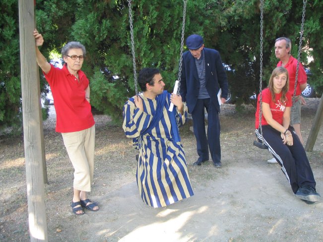 Il palcoscenico mutava continuamente: a volte era il teatrino, spesso gli spazi circostanti la chiesa. Gli attori erano i bambini e gli animatori guidati dal bravissimo Andrea Guaitolini, in arte “Siro”. Ogni giorno Siro, con capacità dialettica e inventiva, portava tutti alla ricerca di Paolo di Tarso, ripercorrendo le tappe del suo lungo viaggio allo scopo di consegnargli il mantello che aveva dimenticato a Troade.