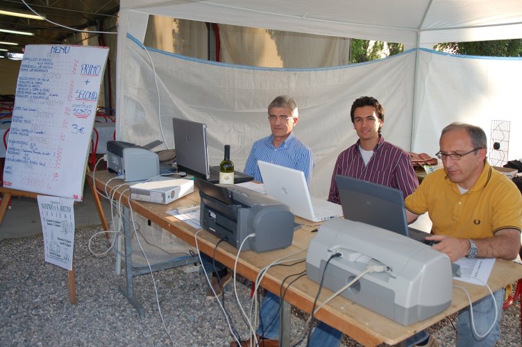 I ruoli più burocratici li hanno svolti Gianni R. e Andrea A. alla cassa, con lausilio di alta tecnologia informatica, e Chiara P. per il coordinamento degli sponsor.