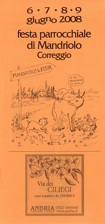 Questa edizione di Mandriolo in festa ha uno scopo ben preciso: gran parte delle entrate saranno inviate in India per permettere a padre Balthazar Katam di costruire la chiesa di Razole (Amalapuram, India) con cui la Parrocchia di Mandriolo è gemellata dal 1966. Aiutaci anche tu.