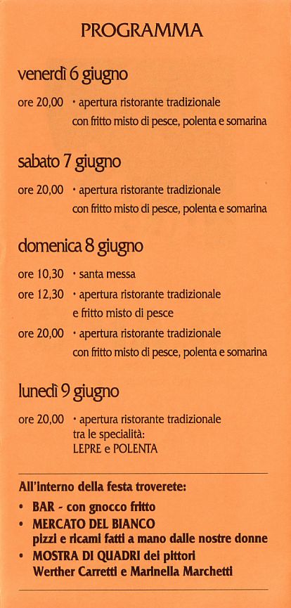 ristorante tradizionale con fritto misto di pesce, polenta e somarina (lunedì 9: lepre e polenta);bar con gnocco fritto;