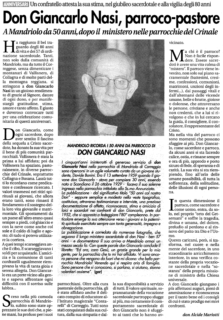 la Libertà, settimanale cattolico reggiano. Sabato 10.10.2009