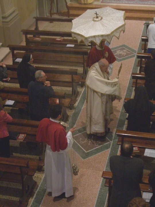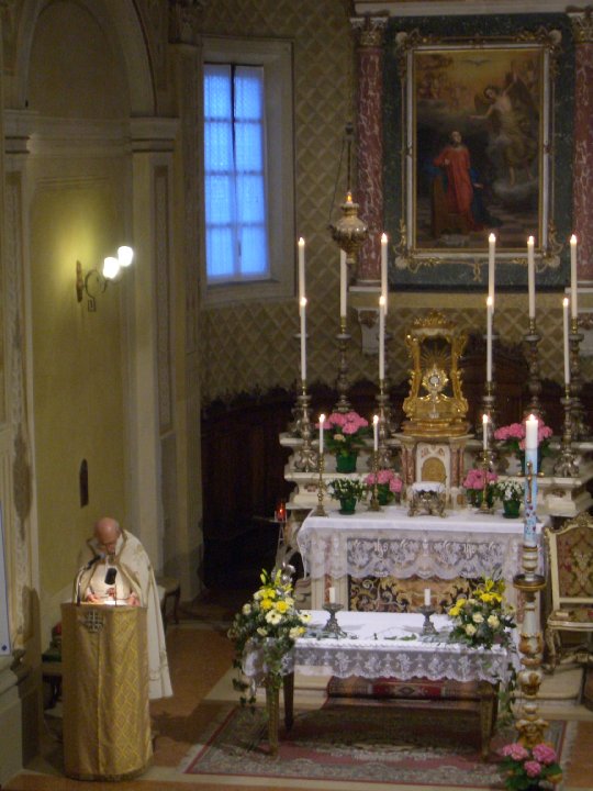 Abbiamo letto, come avete sentito, le parole della consacrazione del pane e del vino. In occasione... il giorno del giovedì santo, abbiamo meditato come noi dobbiamo andare all’Eucaristia per ringraziare Dio; per ringraziarlo soprattutto del dono del suo Figlio; e come dobbiamo tornare dall’Eucaristia con la gioia nel cuore per avere conosciuto e ricevuto Gesù, e con l’intenzione di irradiarlo negli altri, con cui avremo contatto nella vita. Ora cerchiamo – in queste serate – di sviscerare un pochino, di meditare (meglio) un pochino, le parole stesse della consacrazione.