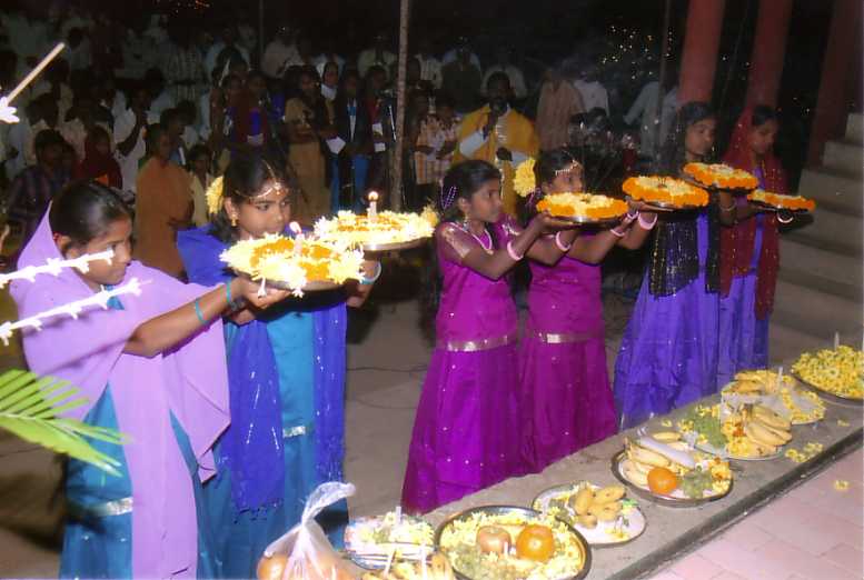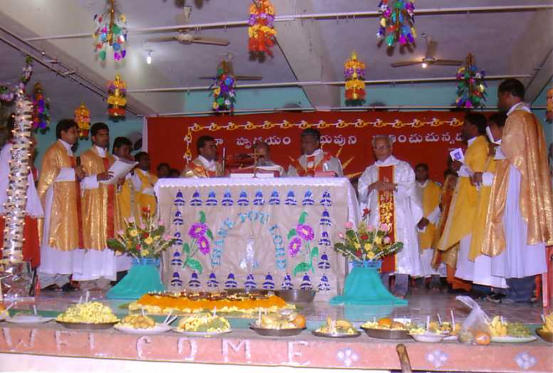 Venendo alla celebrazione dellanniversario, accludo alcune foto delle funzioni. E` stata una celebrazione di 6 giorni durata fino al 13 gennaio 2007. Durante lultima giornata erano presenti un vescovo, 45 preti e più di 50 suore e circa 2.000 fedeli. A tutti i 60 catechisti di Conaseema sono stati dati una bicicletta, Bibbia e rosario come dono per lattività da loro svolta finora. Per sostenere tutte queste spese abbiamo attinto dalle vostre offerte e da quelle di altri benefattori di questa missione. Sono veramente grato a tutti voi ed ai bambini della Parrocchia di Mandriolo per il loro aiuto in questi 40 anni. Sono state offerte speciali messe per voi tutti. Ora le immagini vi illustreranno il resto delle celebrazioni. |