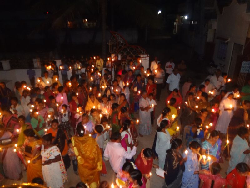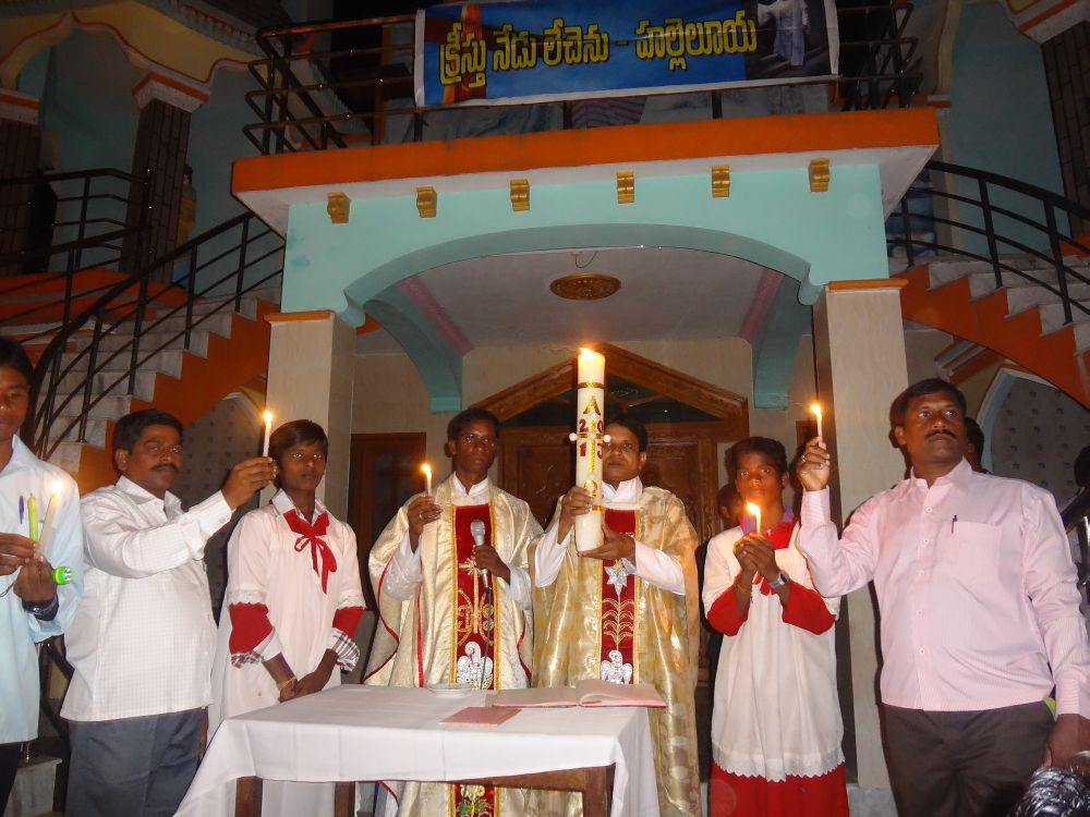 We had a very good and witnessing Easter celebrations in this mission parish. Once again before the Easter Vigil Holy Mass we had public Easter Candle procession in the streets of Razole town. Once again hundreds of Faithful participated both in the procession and and in the Easter Vigil Holy Mass. It witnessed the whole town among the non-Christians. We had some adult Baptisms. 13 persons received the Baptism. It is a sign of Razole Church growth and progress in faith. The Church is growing strong and stronger in faith. Sono andate bene e sono state una ottima testimonianza le celebrazioni pasquali in questa missione. Ancora una volta la Santa Messa della Veglia Pasquale è stata preceduta dalla processione con le candele, per le vie del paese. Ad entrambe hanno partecipato centinaia di persone, come testimonianza per l'intera città, fra i non-cristiani. Tredici persone adulte hanno ricevuto il battesimo. E' segno che la Chiesa di Razole cresce nella fede. Davvero la Chiesa cresce sempre e sempre più nella fede.